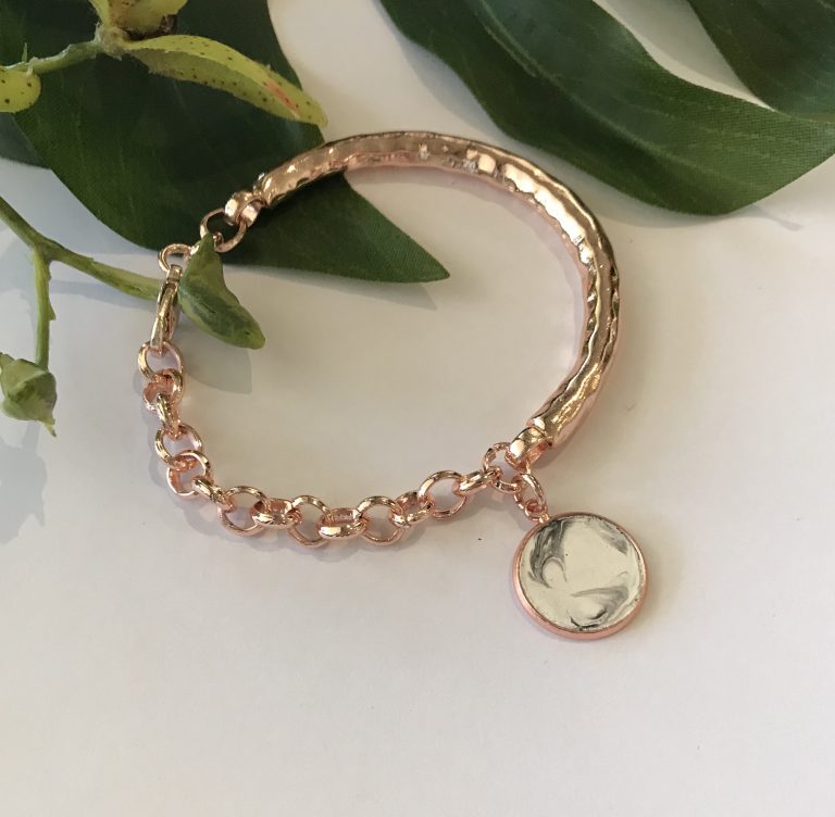 Metal is available in Rose Gold or Silver Plating Note- photo is sample only, each piece is Handmade and unique, you will receive a brangle of equal quality. Brangle: 20cm