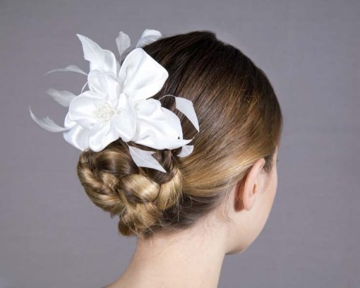 Beautiful white hand made flower fascinator comb for weddings and special occasions.